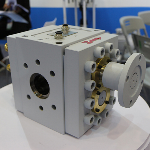 回流槽一端靠近导流槽小端但不接穿,回流槽从轴套的一侧壁延伸至轴套的外侧壁。轴套一对对称设置分别对应主动轴和从动轴,两个轴套的回流槽对应设置,回流槽形成回流孔。采用本结构的轴套设置在泵体的主动轴和从动轴上,轴套和轴做相对旋转运动,泵体内的熔体一小部分通过导流槽大端渗入到轴套内孔壁内起到很好的润滑作用,渗入到导流槽内的熔体从导流槽小端流出,流入到相近的回流槽内,该部分自润滑的熔体在泵内外压差的作用下回流到泵体的腔体内,实现一个自润滑的循环,可以减少轴套和轴的磨损,保持熔体泵长期稳定的运转。